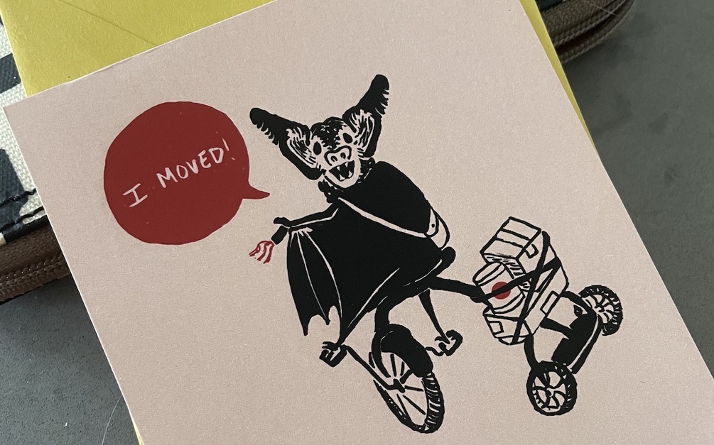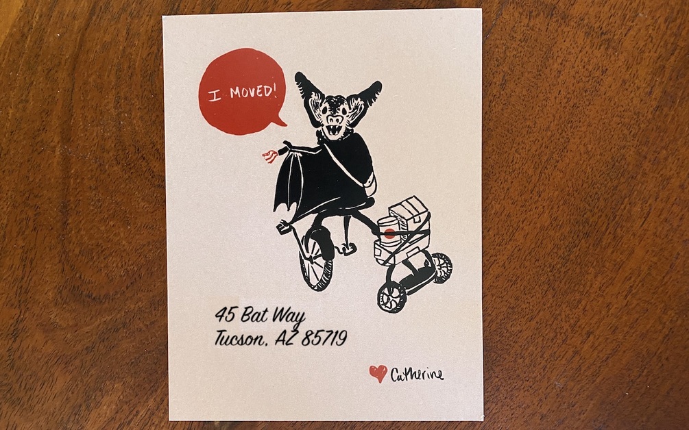This whimsical illustration is perfect to customize with your moving information for a personal note card, postcard, or email.